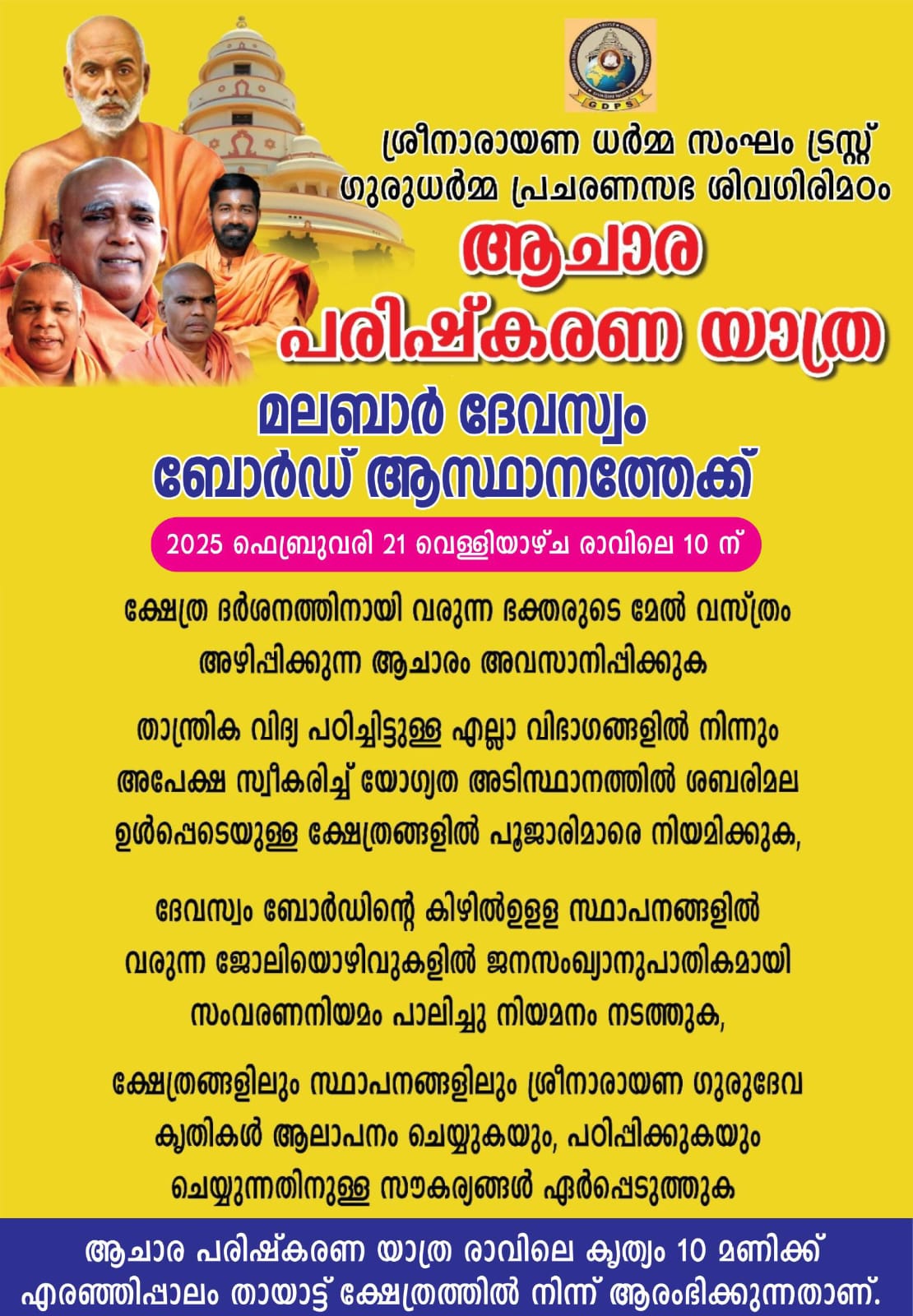 ആചാര പരിഷ്കരണ യാത്ര മലബാർ ദേവസ്വം ബോർഡിലേക്ക് 21.02.2025